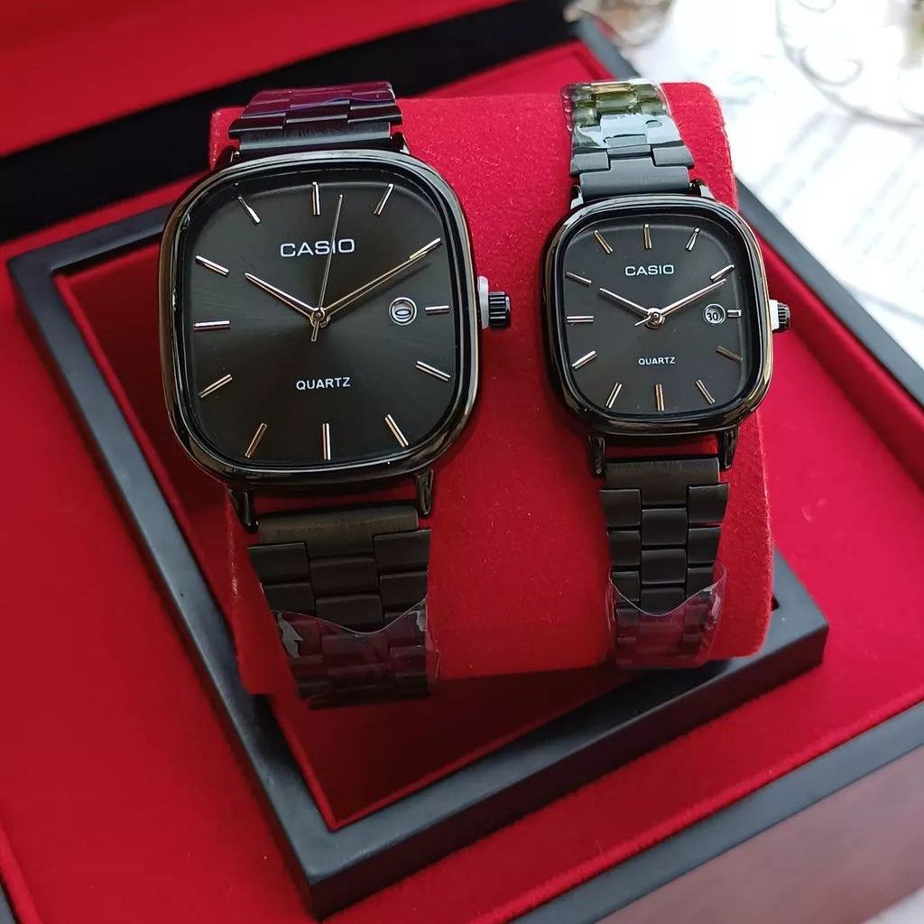Casio Couple Watch โ Timeless Gift for Two Celebrate love with a matching Casio Couple Watch set โ a perfect blend of style, elegance, and durability. Designed with a sleek gold finish and bold black dial, these watches are not just accessories, but a symbol of togetherness.